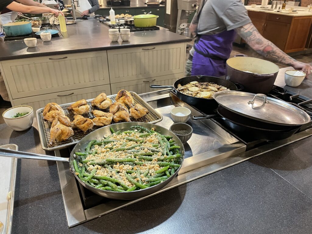 One of the best parts of the trip was a cooking class we took with friends. The menu included Cornish game hens, potatoes, peas and carrots, green beans, and tiramisu. It was fun to cook as a group and finally learn how to dice an onion properly!